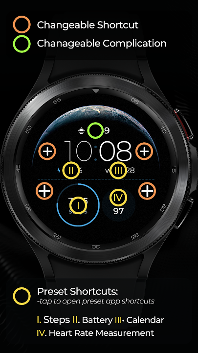 - 一款數位錶盤,包含四種背景。