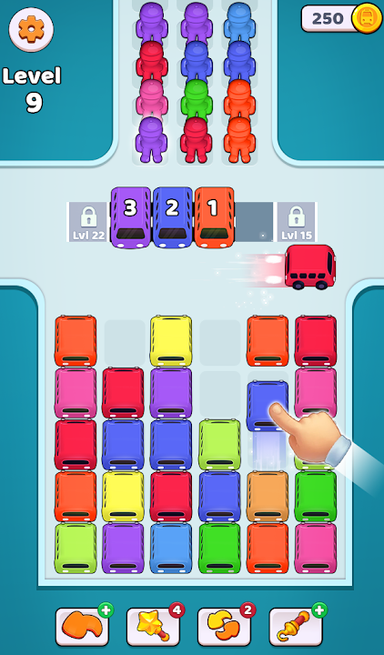 Successfully pair all vehicles with their passengers to free up the jammed lanes and advance to the next bus escape level.