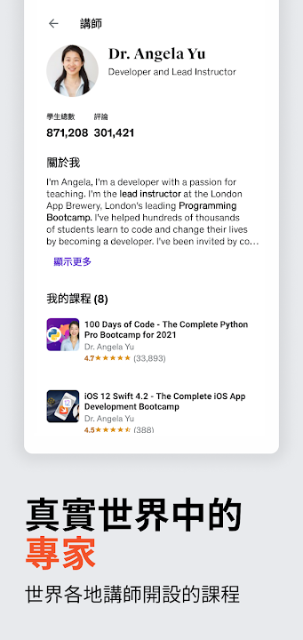 向各領域的真實世界專家學習,涵蓋科技、商業、創意思維到個人成長等多元主題。透過 AI 智慧推薦、彈性學習方式與貼合您工作需求的工具,Udemy 讓您在日常生活中也能持續學習。