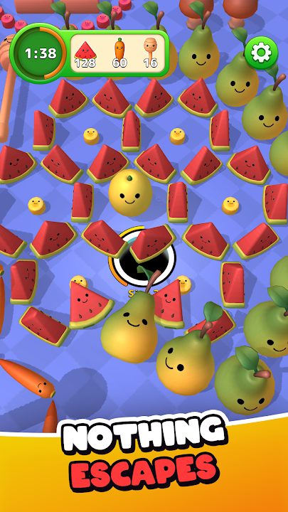 每一关都包含一片充满水果的场地,你的任务就是将它们全部吞下。尽可能快速高效地吞下果冻水果,避免意外堵塞黑洞、将水果撞出场地或耗尽时间。关卡难度逐渐增加,所以要花时间磨练你的果冻吞食技巧。尽管有计时器,但这款果冻洞游戏仍然充满乐趣,适合所有年龄段和水平的玩家,并且功能丰富。