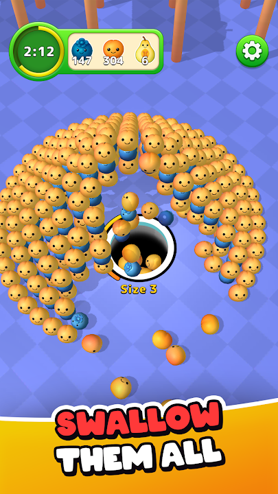 - 人人皆可享受——无论是经验丰富的玩家还是新手,都能从这款令人上瘾的游戏中获得乐趣。随着游戏的深入,关卡难度会逐渐增加,让您轻松上手规则和玩法。如果您遇到困难,还可以使用辅助道具。在游戏过程中,您可以花些时间欣赏场地上色彩缤纷的水果图案,以及黑洞吞食食物时的动画。