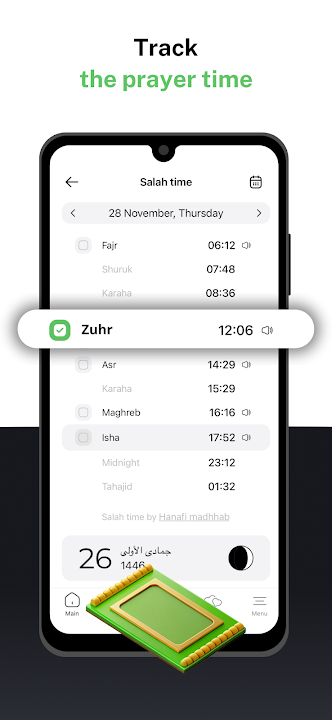 - Prayer Times Tracker: Stay updated with accurate Salah times based on your location. The app provides a daily prayer schedule, ensuring you never miss your prayers.