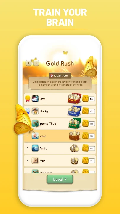 Challenge your friends and other players with the Gold Rush mode that brings a weekly challenge to the game. Find the golden letter tiles and earn points. Finish each week on top to get amazing rewards.
