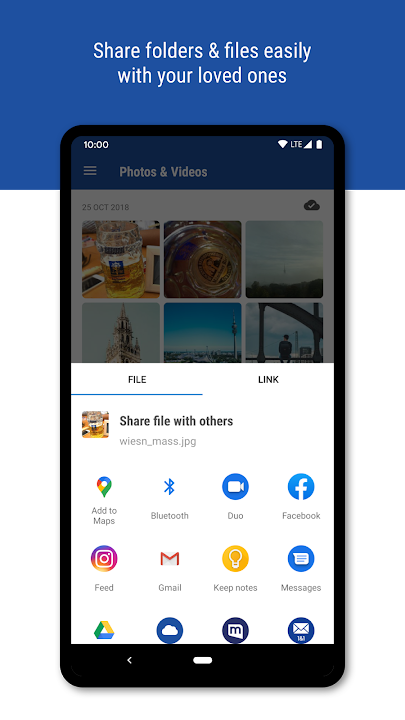 ✓ Share files and folders with friends quickly and easily