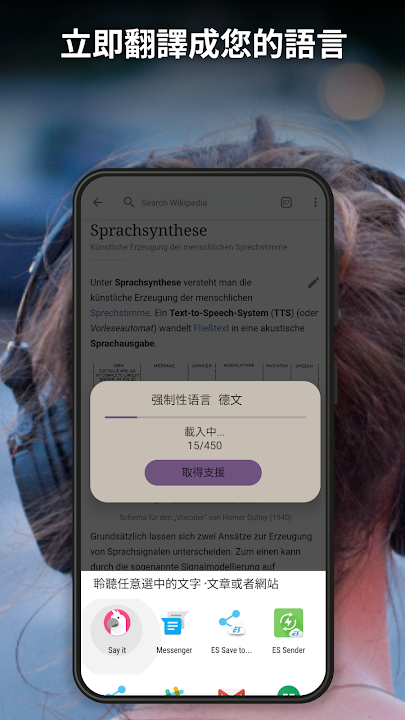 - 支援Android標準共享機制:可以從任何應用程式使用