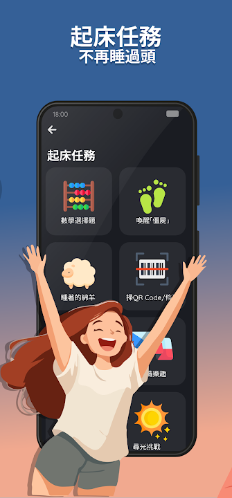 ✔️ 透過 CAPTCHA 任務和延遲限制 (Snooze limit),再也不會睡過頭
