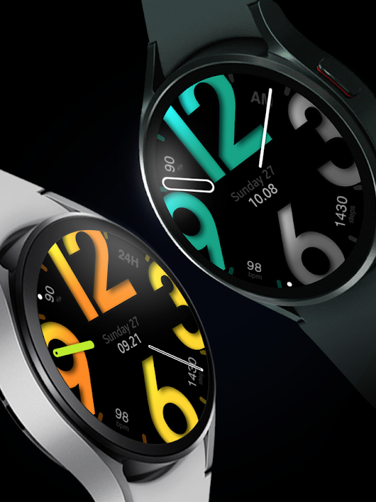 此錶盤需要 Wear OS API 33+(Wear OS 4 或更高版本)。相容於 Galaxy Watch 4/5/6/7/8 系列及更新機型、Pixel Watch 系列以及其他搭載 Wear OS 4 或更高版本的錶盤。