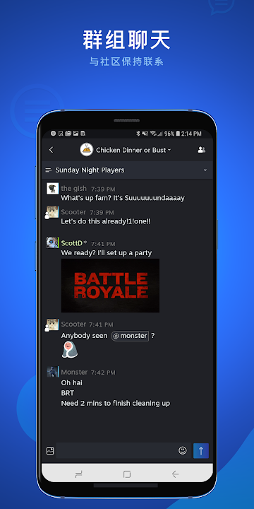 丰富多彩的聊天方式:聊天体验更出色,提供更高质量的链接、视频、推文、GIF、Giphy、Steam 表情等等。