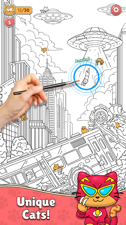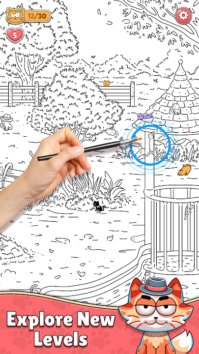 在黑白背景下寻找可爱的猫咪。探索世界各地的不同地方,并尝试找到所有的猫咪。游戏很容易上手,但要通关却并非易事。