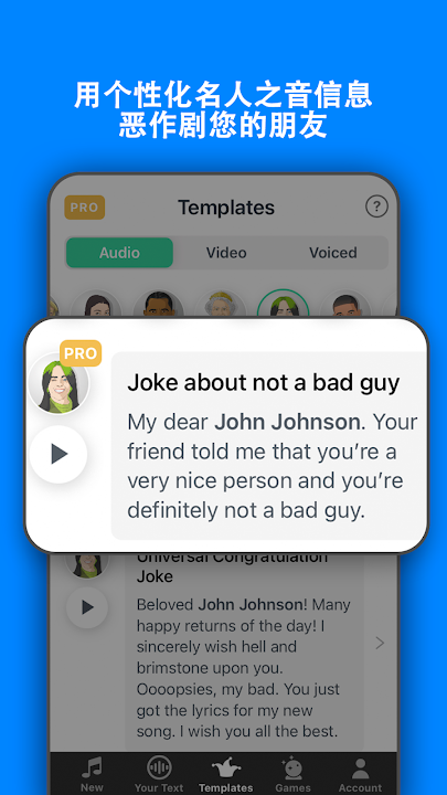 通过神经网络,模仿名人声音为您的朋友和家人创建个性化的恶作剧音频和视频、生日或其他节 日祝福。