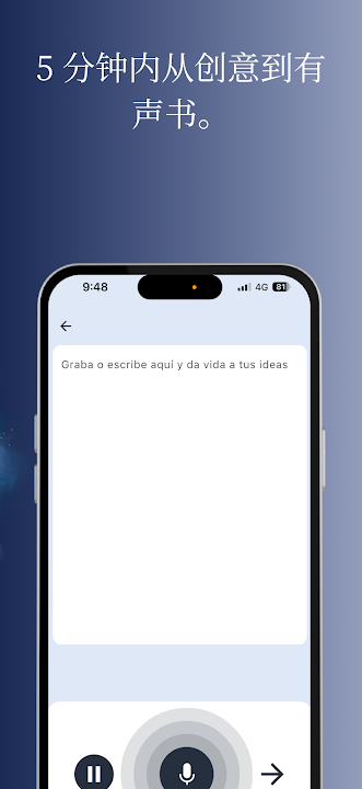 • 📚 即时发布与分享: 将你的原创有声书发布到我们专属的平台,触达成千上万的听众