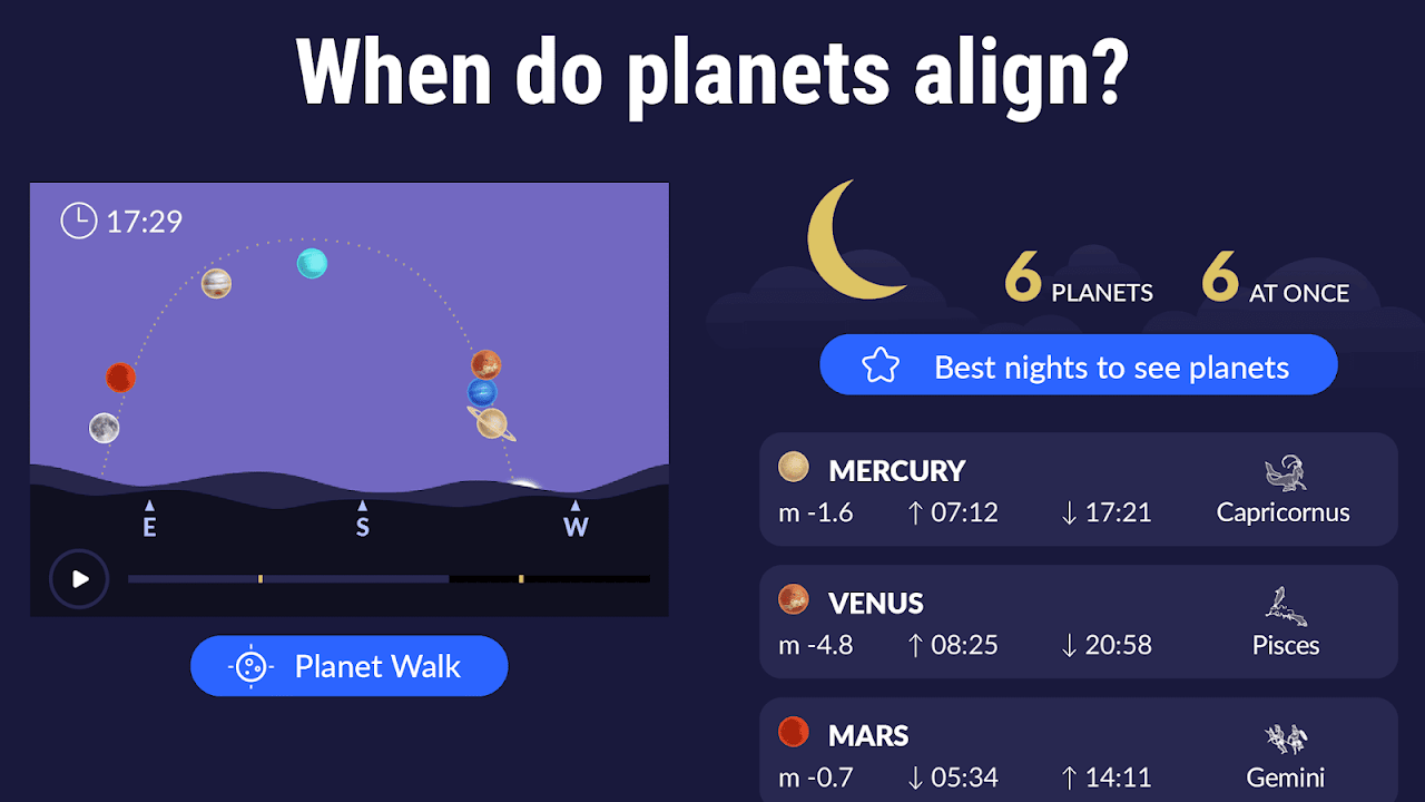 Stargazing Guide App. Stars and constellations map. Solar system planets finder.