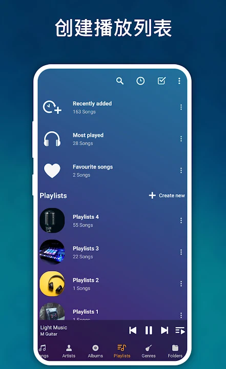 按文件夹和专辑,艺术家,流派播放音乐