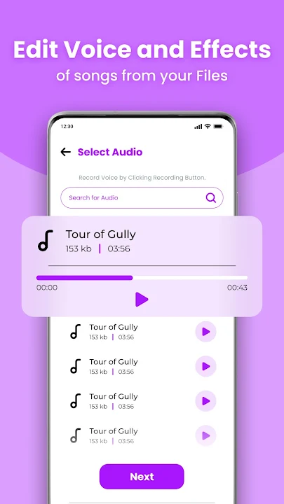 Voice changer audio effects is the voice change app, which has different voice effects and sound effects with different catalogs. You can change your voice in one touch and check the funny voice effects on your audio. If you want audio editing and voice modifiers to be present inside the Voice Changer - Audio Effects app. For changing audio into funny sounds, or shocking voices for pranks with friends you can produce good quality audio with a voice-over changer.