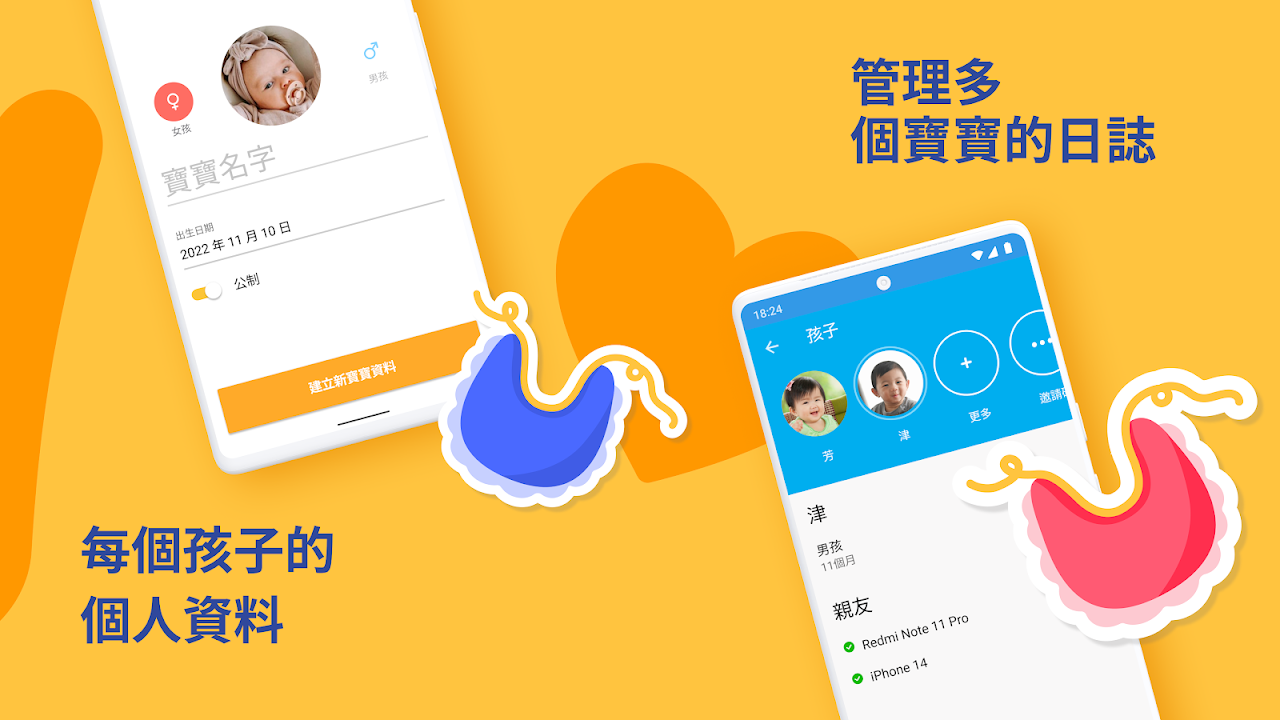 嬰兒 紀錄:哺乳日記、尿布、睡覺、活動。生長曲線 app:身高和體重控制