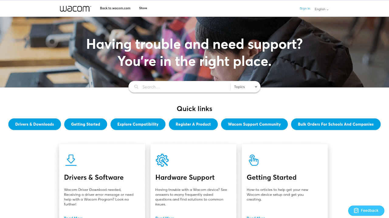 Wacom Support 时刻就绪准备为你解决 Wacom MovinkPad 设备上的任何问题。通过聊天或邮件联系、注册产品,管理 Wacom ID──一切都在这里。只要前往“设置 > Wacom Support”──你需要时随时可用。我们在这里,让你专注于创作。