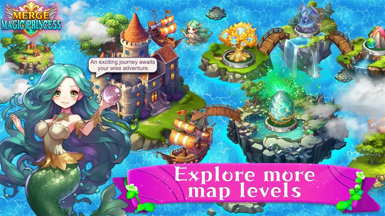 在「合併魔法公主」中組織、客製化並建造你夢想中的魔法島