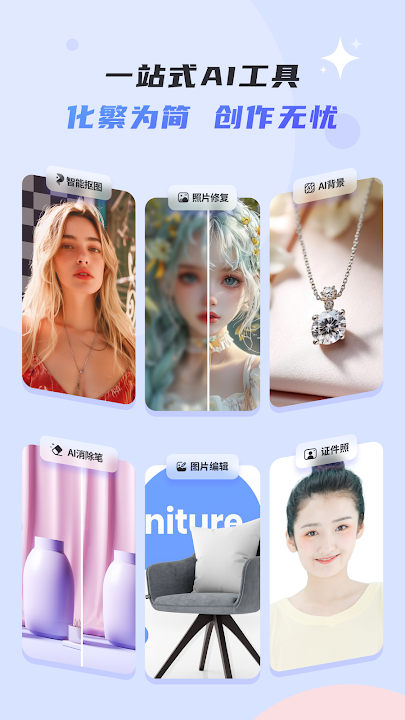 佐糖用AI让图片创作更简单!采用人工智能技术,历经千万次的AI图形训练,精准识别主体,不用ps,无需任何作图修图技巧,一键就能制作出各行业、各类型的精美图片。