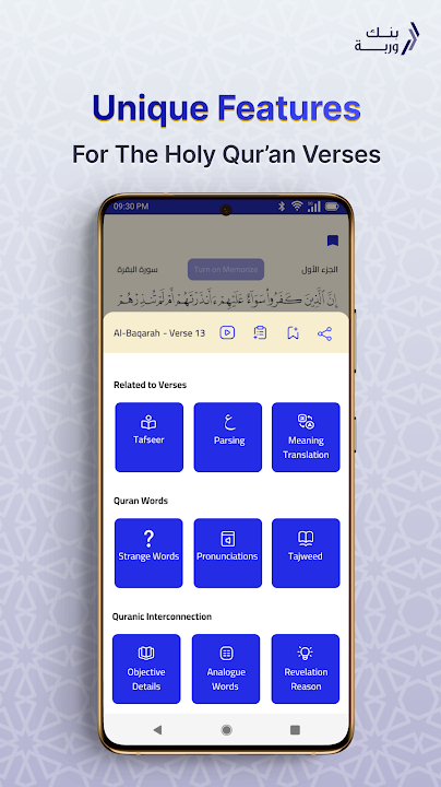 Download the Quran app from Warba Bank for a distinctive and unique experience.