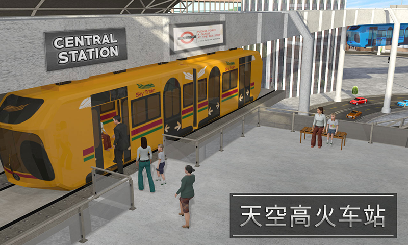 看到新一代的轨道在天空轨道,同时驾驶2017年的未来派子弹火车。高架列车驾驶模拟器3D游戏,并驱动天空列车超越道路交通堵塞在巨大的城市环境。运输城市乘客从一个火车站到其他地铁站在天空高架列车。