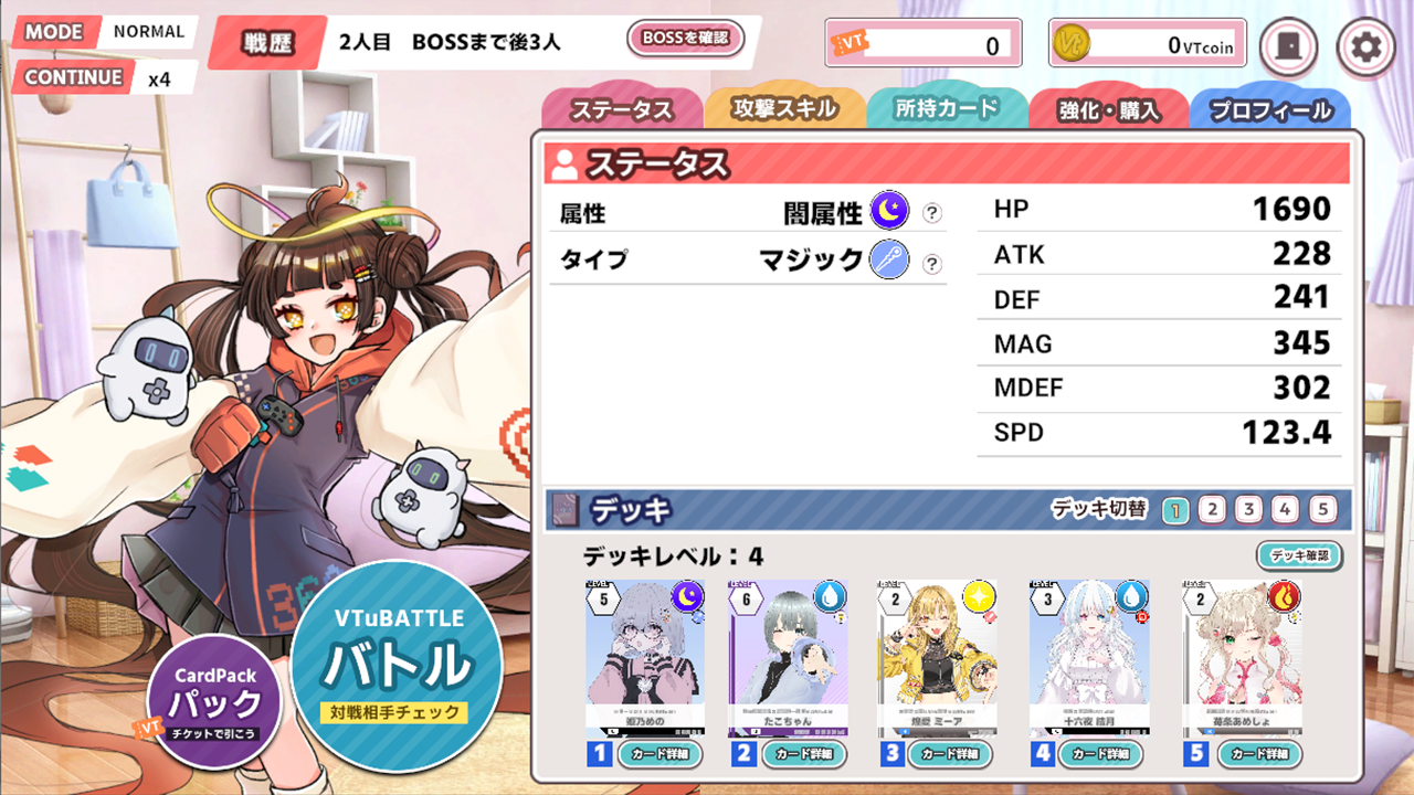 《VTuber对战:不是粉丝数量决定胜负!而是实力决定胜负!》是一款融合了卡牌游戏、自动战斗和Roguelite元素的VTuber卡牌对战游戏。