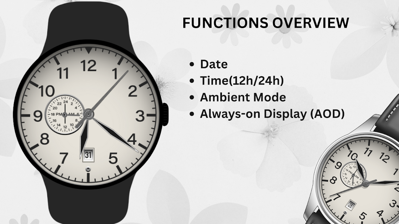 利用專為 Wear OS 設計的優雅混合經典錶盤,實現傳統與現代的完美平衡。這款錶盤結合了復古風格的模擬時鐘設計和精緻的數位子錶盤,實現了混合美感,非常適合那些欣賞經典風格和現代便利性的人。
