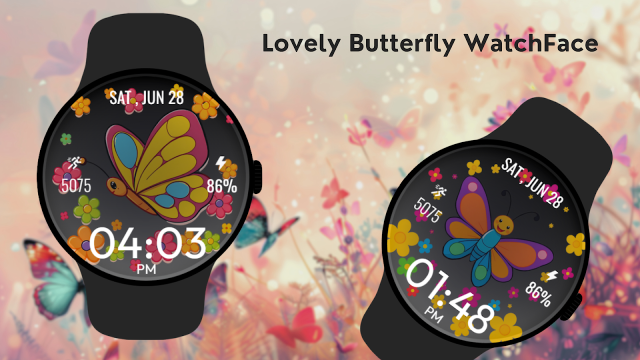 Let your wrist bloom with charm using the Lovely Butterfly WatchFace—a vibrant Wear OS watch face featuring a beautifully illustrated butterfly surrounded by cheerful spring flowers. Designed for those who adore nature, color, and seasonal aesthetics, this watch face brings joyful energy to your everyday style.