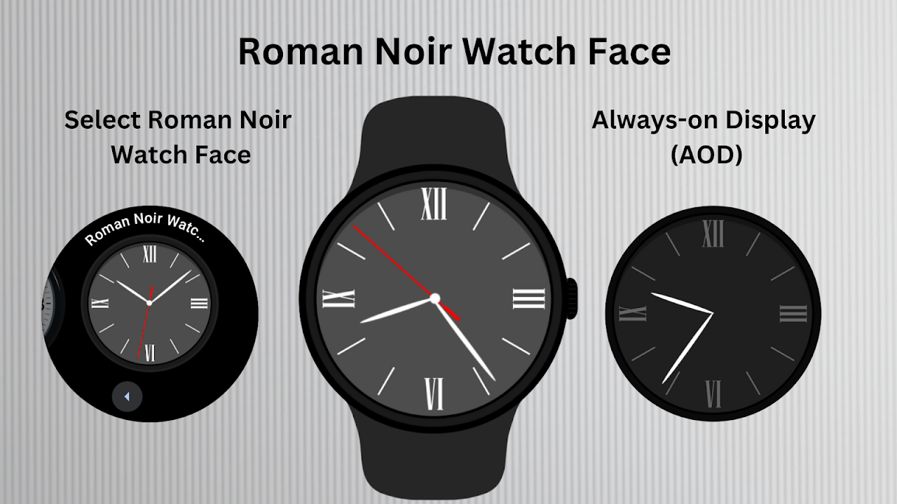 Embrace timeless style with the Roman Noir Watch Face. Featuring a classic Roman numeral layout on a bold dark background, this analog watch face blends tradition with modern minimalism. Perfect for anyone who appreciates elegant simplicity on their Wear OS device.