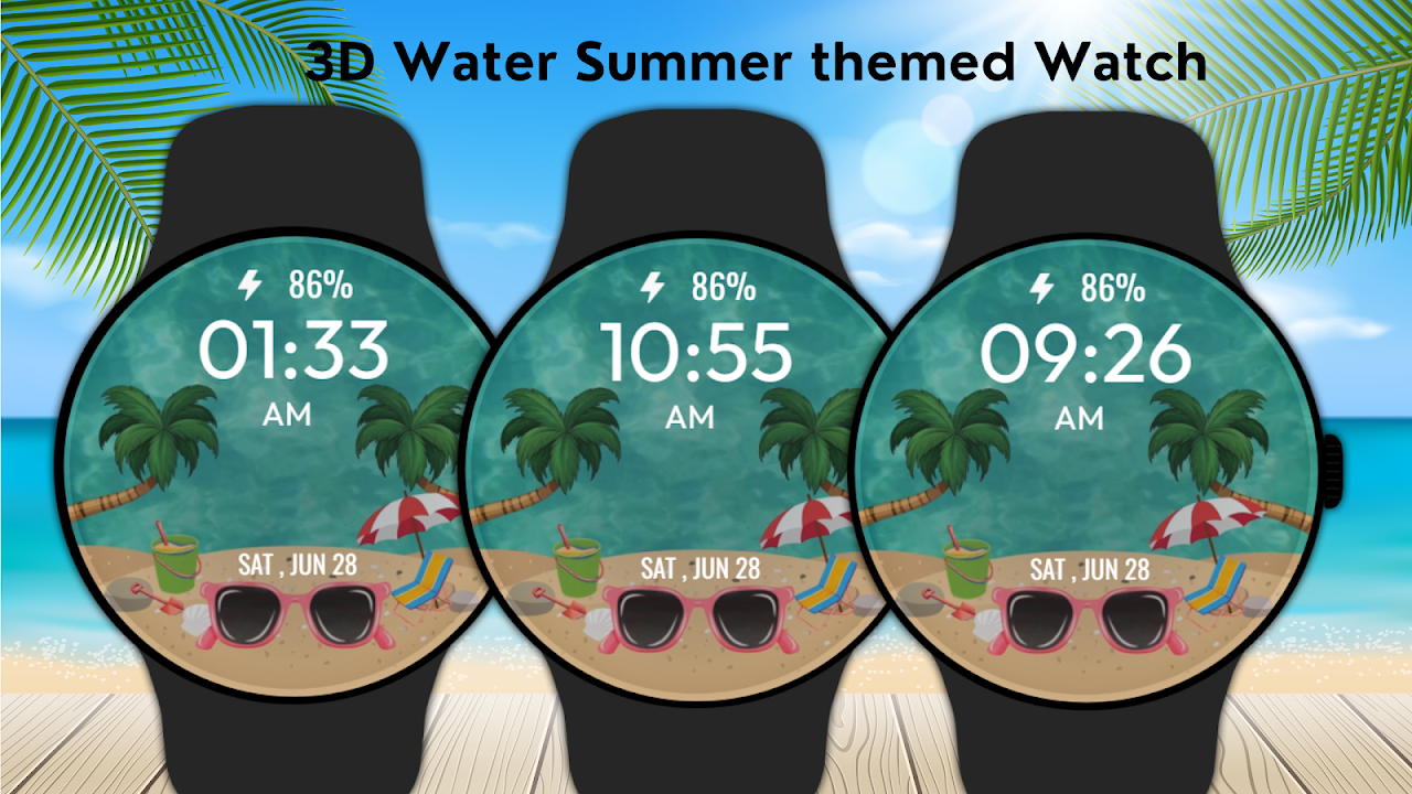 透過清爽的 3D 水灘錶盤感受夏日微風!