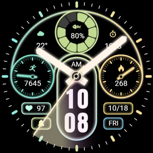 4. 底部:時間、心率、自訂應用程式、日期、星期