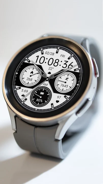錶盤支持在 Wear OS 上運行 1. 外圈:自定義 APP 2. 頂部:日期、星期、時間、自定義數據 3. 中間:卡路里和百分比指針、步數、步數目標百分比指針 4. 底部:距離、上午和下午、電池和百分比指示器、心率 自定義:多個自定義區域可供選擇 兼容設備:Pixel Watch、Galaxy Watch 4/5/6/7 及以上以及其他設備 如何在 WearOS 上安裝錶盤?