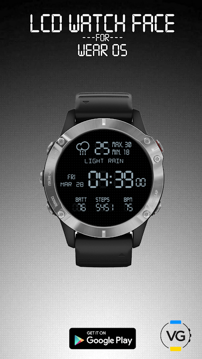 Simple LCD style for Wear OS. Key data at a glance. AOD & color customization.