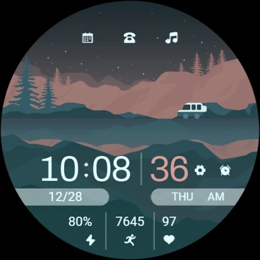 3. Bottom: Battery level, step count, heart rate