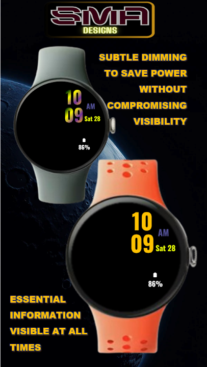 此表盘需要 WearOS API 28+。兼容 Galaxy Watch 4 系列及更新机型、Tic Watch、最新的 Fossil 等。