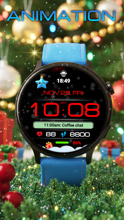 一款實用且充滿動畫效果的 Wear OS 新年錶盤