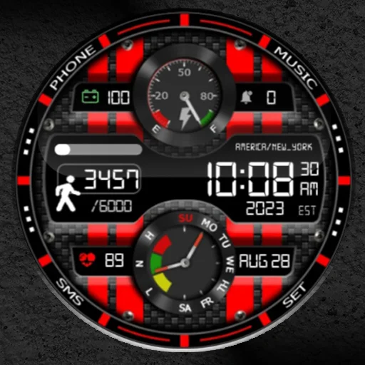 The W100D is a digital watch face for Wear OS with many customizations.