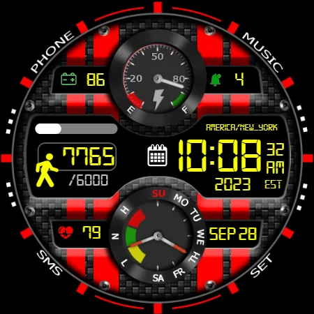 It contains 3 Preset App shortcuts, and 4 customizable complications where you can have the data you prefer such as Phone, SMS, Music, and Settings.