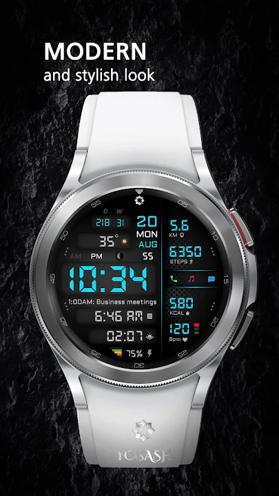 现代化的数字设计,清晰显示您的健康数据——步数、心率、卡路里、电量和自定义小部件——所有功能均针对流畅性能和持久电池续航进行了优化。