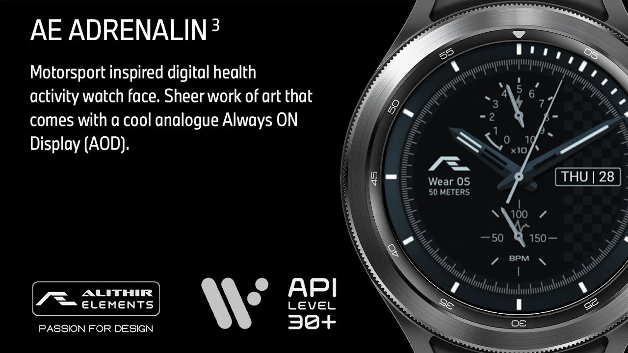Motorsport inspired activity watch face, evolved from the sucessful AE ADRENALIN [Digital]. Six striking luminosity that suits any occasions.