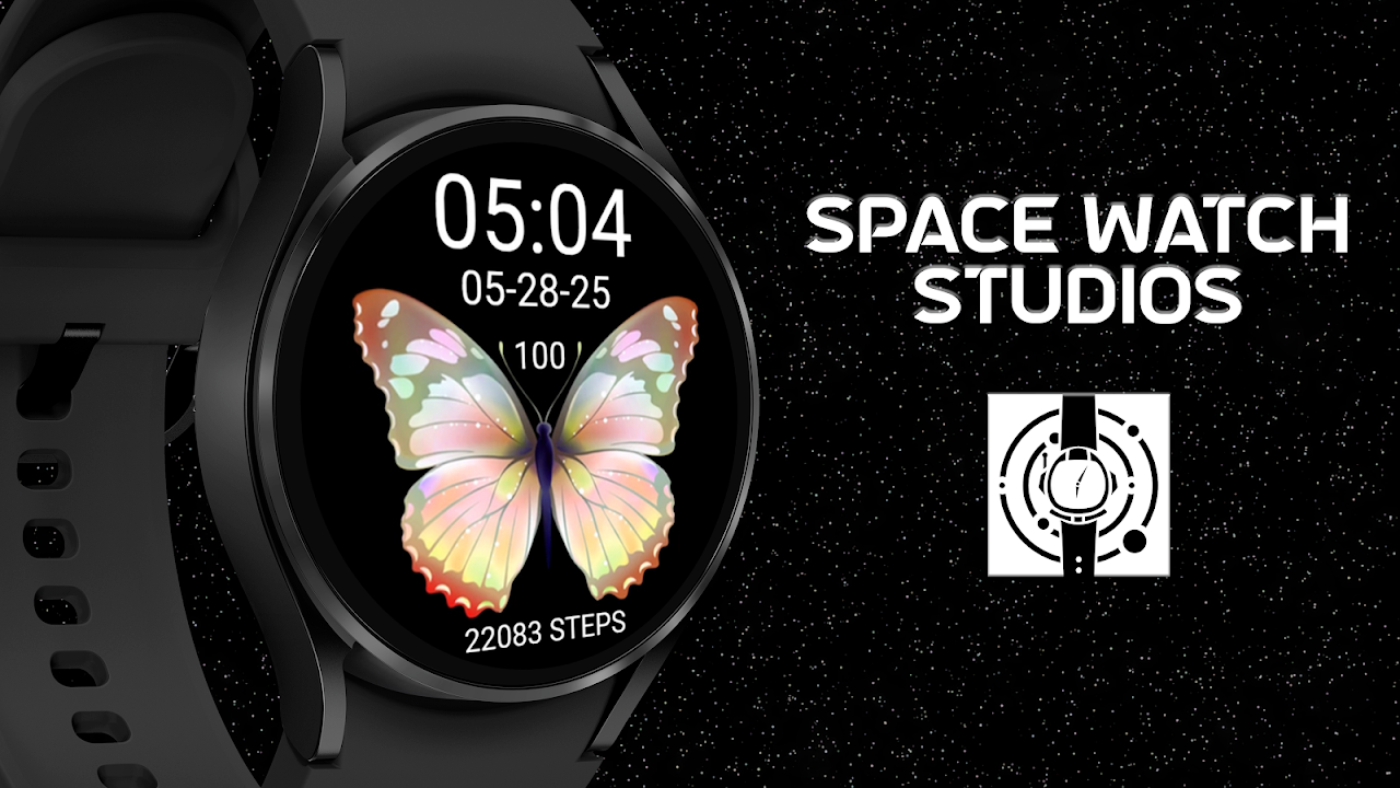 適用於 Wear OS 智能手錶的動畫數字金蝴蝶錶盤