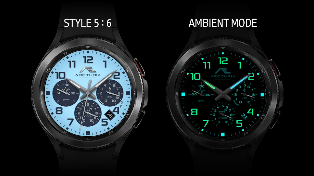 飛行員風格的運動錶盤,專為專業人士打造。六個錶盤與整合的子錶盤形成鮮明對比 - 顯示關鍵的健康活動資訊。與 AE 標誌性的「始終開啟顯示」(AOD) 相得益彰,具有驚人的亮度。