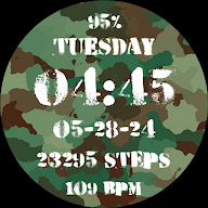 Army Camouflage Soldier Watchface for your Wear OS smartwatch! Watchface is available on devices running Wear OS API level 28 and higher. English watchface only. Thanks and enjoy!