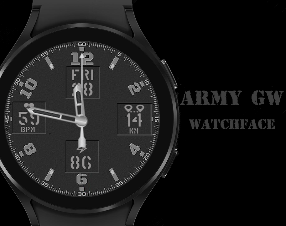 僅適用於 Wear 作業系統-模擬時間-日期顯示- 電池電量顯示- 顯示行駛距離-心率