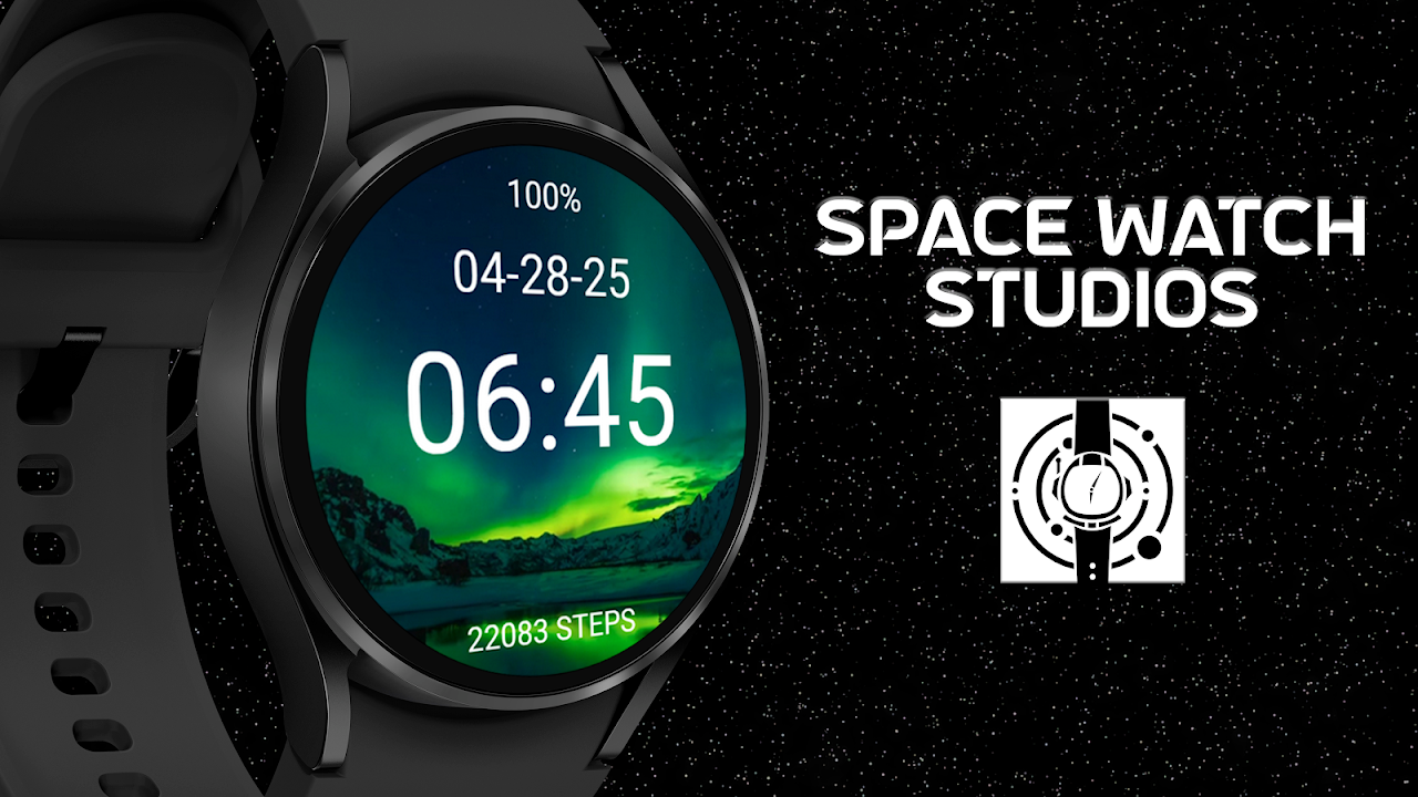 适用于 Wear OS 智能手表的动画 Galaxy Aurora Borealis Space Watchface