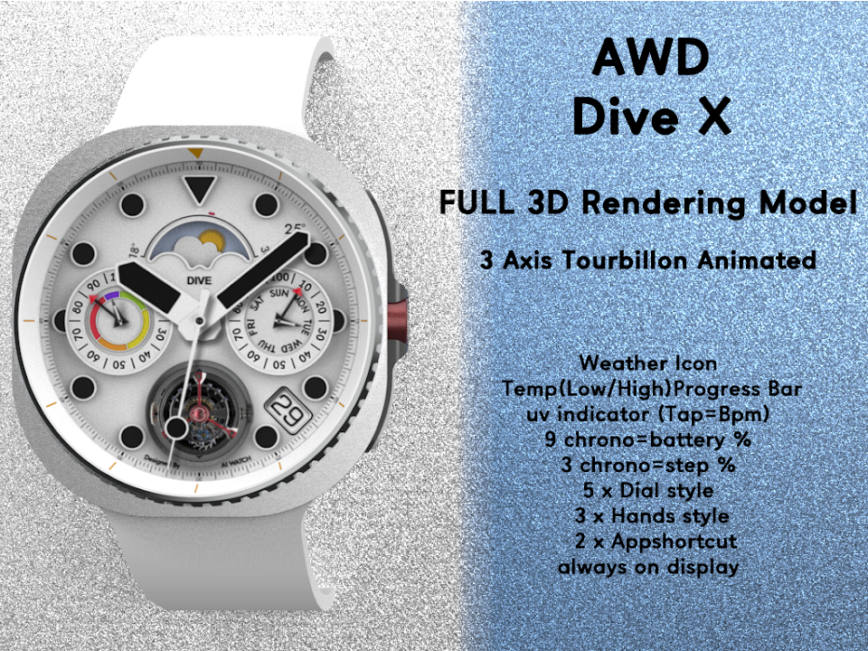 - 9 inside chrono = Uv indicator (Tap = Heartrate)