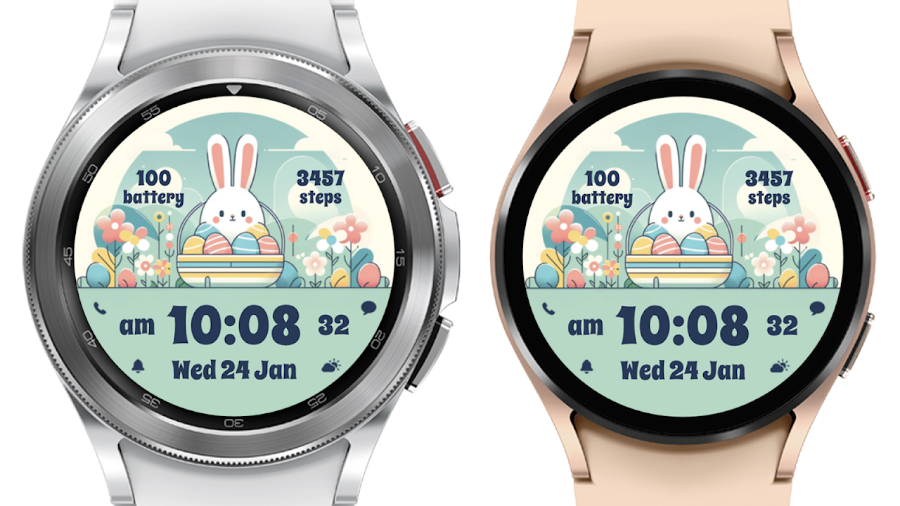 Experience the magic of Easter with the Easter Bunny watch face. Install it today and enjoy the holidays every time you look at your watch!