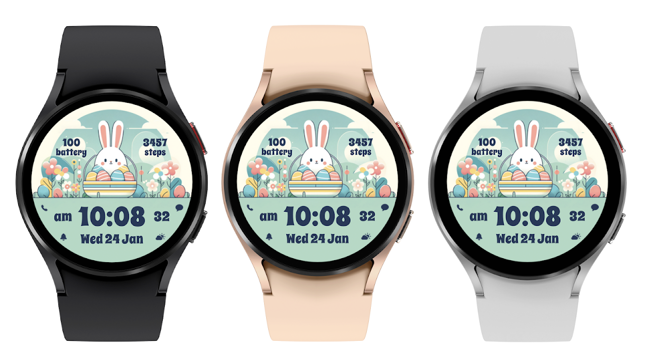 "Easter Bunny" is compatible with Wear OS watches, providing a smooth and colorful time display.