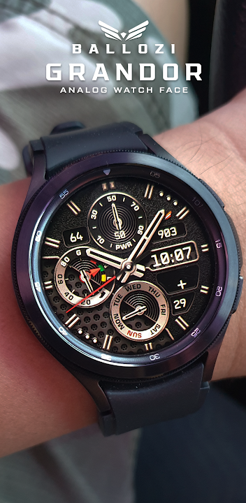 BALLOZI GRANDOR 是一款適用於 Wear OS 的現代金屬風格運動混合錶盤。