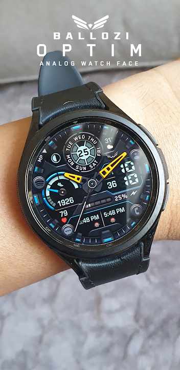 BALLOZI Optim is a new modern informative hybrid sporty watch face app for Wear OS. This watch face have a unique layout across watch face arena with visible and readable health information. BALLOZI Optim was designed and developed in Watch Face Studio with Samsung Galaxy Watch 4 and Samsung Galaxy Watch 5 Pro as test devices.