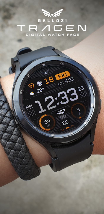 Ballozi Tragen is a futuristic cyberpunk UI inspired watch face for Wear OS from Ballozi. Works great on round smartwatches but not suitable for rectangular and square watches.